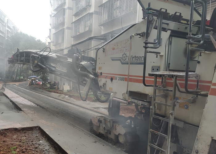 路面銑刨 :通俗說就是把損壞的舊路面刮一層,再鋪新面層。一般為的是消除舊路面破壞松散部分,或為了新舊面的結合良好。還有,為了提高路